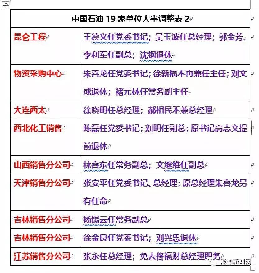 中石油最新领导名单已公布,这些领导将引领未来能源行业的发展。他们拥有丰富的经验和专业知识,致力于推动公司业务的稳步发展,并积极探索新的能源领域和技术。这些领导人的领导力和战略眼光将有助于公司在激烈的市场竞争中保持领先地位,为能源行业的未来发展注入新的动力。